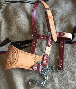 Chain Pack halter 1 1/4” wide. Lined with red latigo. Regular noseband. Brass or Stainless Steel hardware.